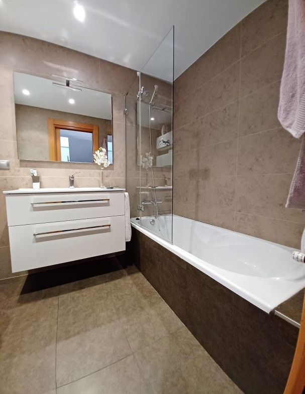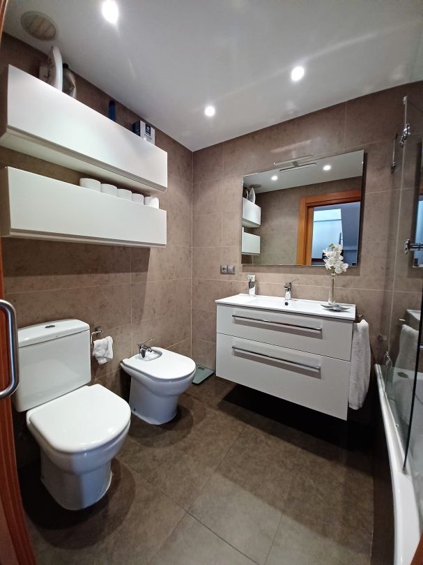 Subiendo a la primera planta, nos encontramos con una superficie de 64,40 m2 útiles, que alberga un distribuidor, tres cómodos dormitorios y un baño completo. El dormitorio principal es un verdadero refugio, equipado con un vestidor y un baño completo en suite con ducha, ofreciendo privacidad y comodidad. Los otros dos dormitorios son ideales para hijos, invitados o incluso como espacios de trabajo, y comparten otro baño completo ubicado en el pasillo. Además, la escalera que da acceso a la planta bajocubierta está bien integrada en el diseño, asegurando que el flujo de la casa sea funcional y cómodo.